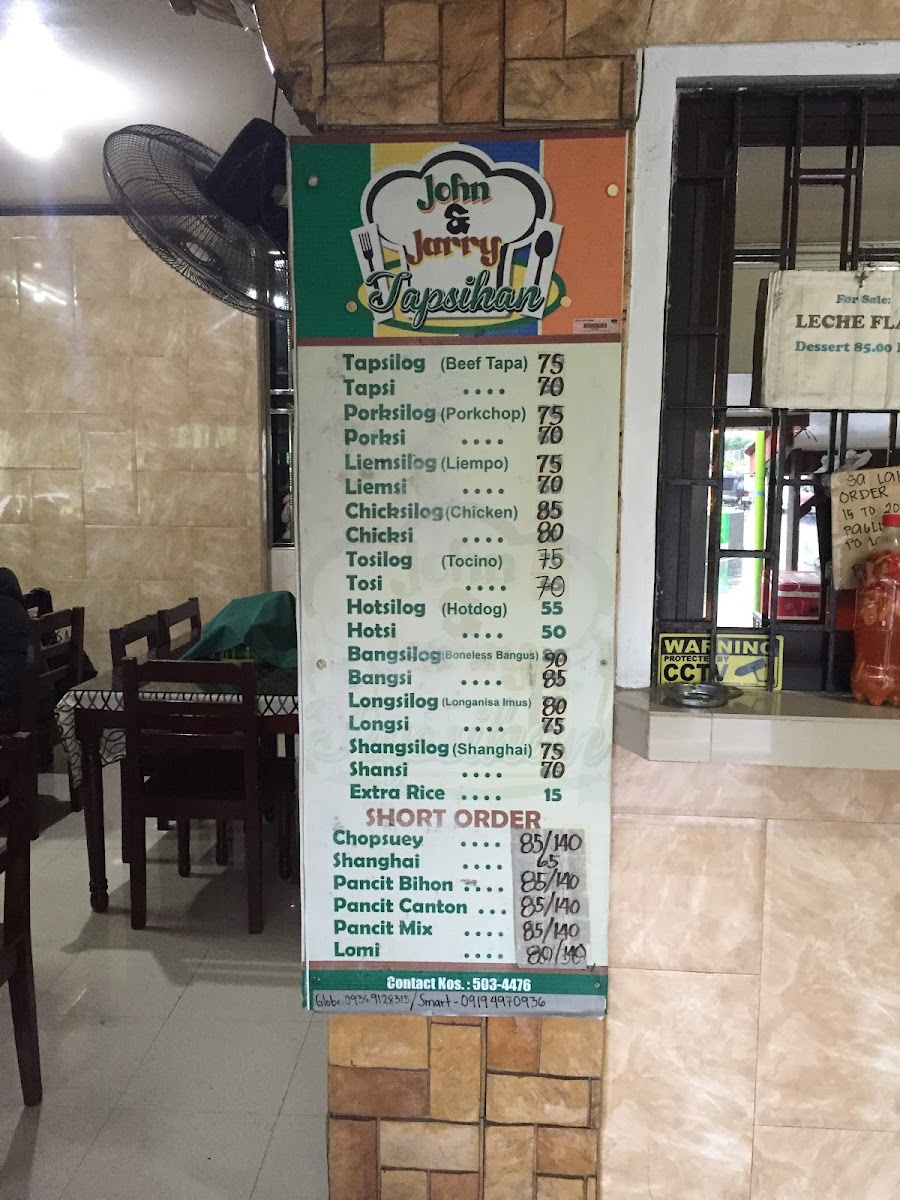 John & Jarry's Tapsihan offers a straightforward and comforting menu centered around classic Filipino silog meals and familiar local flavors. The selection is ideal for those seeking satisfying, home-style dishes throughout the day—whether it's a hearty breakfast to start early mornings or a casual late-night meal after a long day.